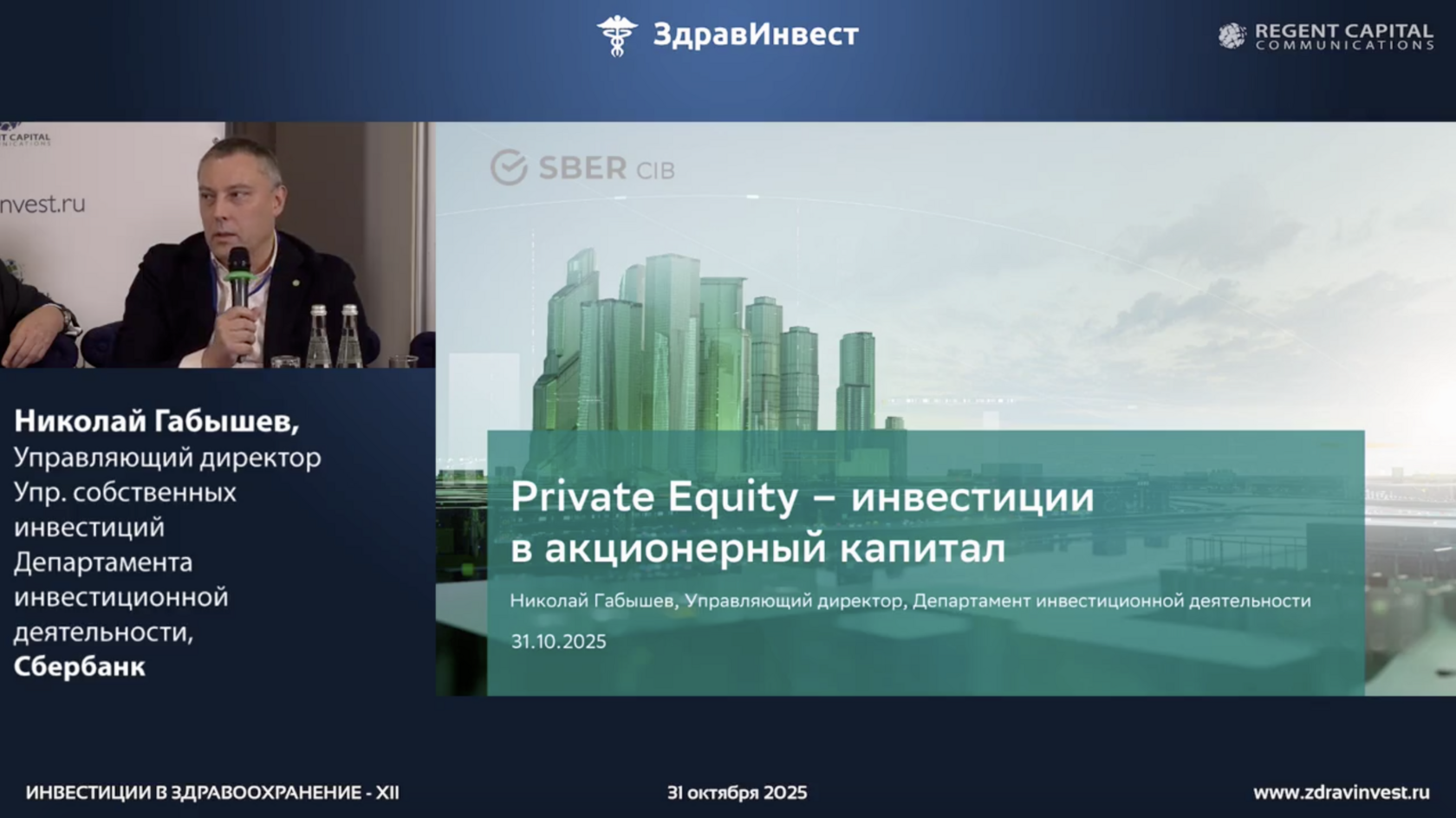 О роли корпоративного управления в повышении инвестиционной привлекательности говорил Николай Габышев, управляющий директор по инвестициям Сбербанка. Он поделился опытом банка в медицинских проектах, включая сотрудничество с ГК «КДЛ», и отметил, что подход Сбербанка к инвестированию основан на принципе долгосрочного партнёрства.